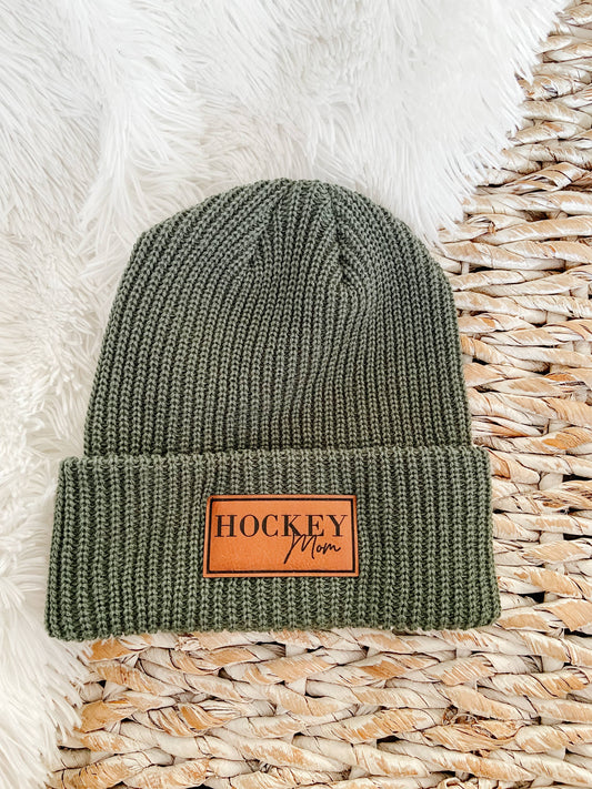 Hockey Mom Leather Patch Beanie